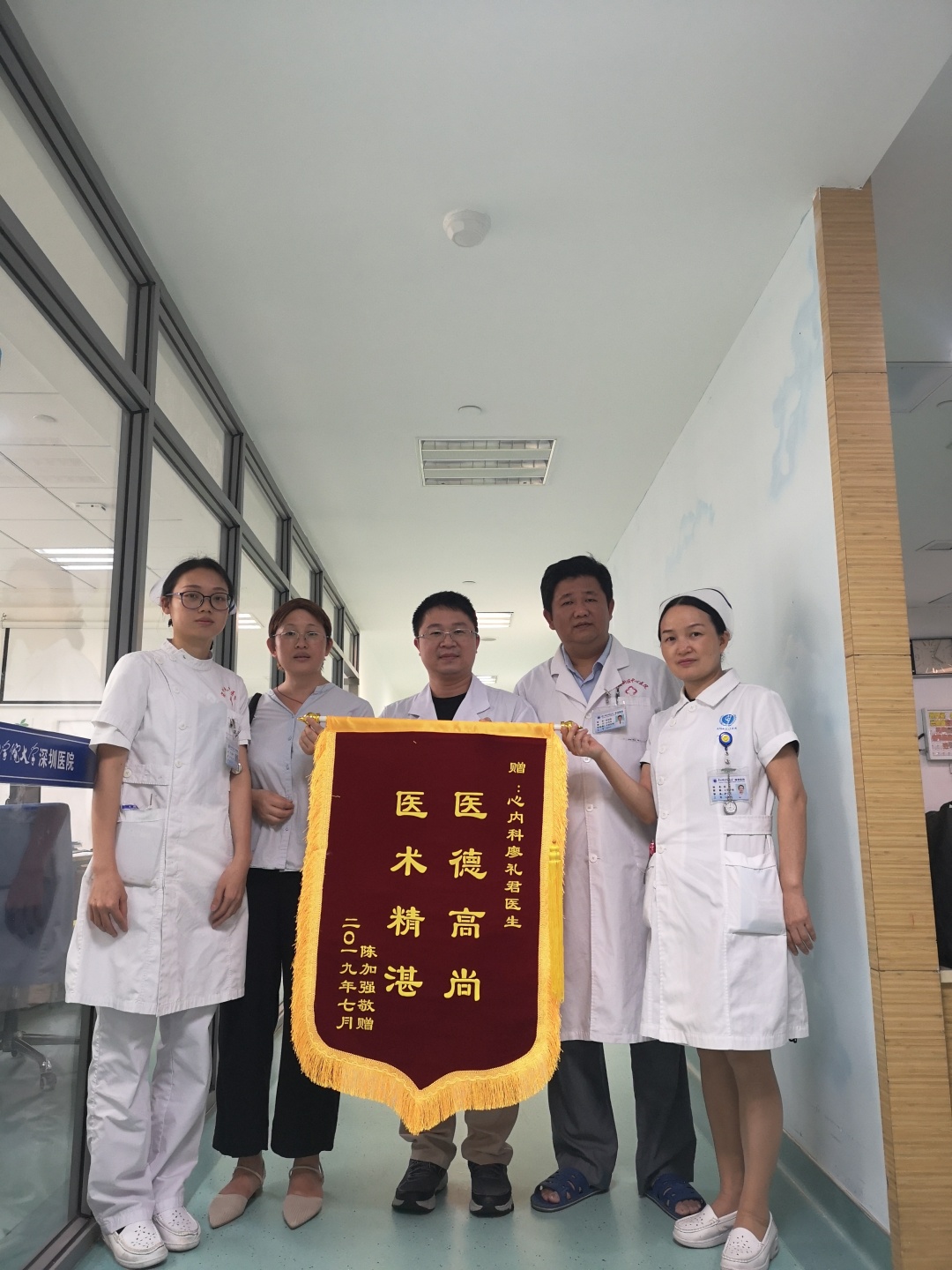 7月28日,心内科廖礼君医生收到患者陈先生送的锦旗。陈先生49岁,半年前开始出现胸闷、气短,反复发作,痛苦不堪。以前是家中主要劳动力,现在什么事都做不了。他先后到赣州和广州三家医院就诊,各种检查、治疗后,病情仍无好转,且胸闷、气短愈加频繁,重时伴四肢抽搐、麻木,完全丧失劳动能力,一家人近乎绝望时,朋友介绍我院廖礼君医生,一家人遂从江西赣州赶来。廖医生接诊后详细、耐心询问询问病情,认真查体,仔细阅读所有检查资料,综合分析病情,明确诊断,排除严重器质性疾病,考虑躯体化障碍,给予抗焦虑,精神治疗,胸闷、气短未再发作,同时鼓励病人先病区活动,再病区花园内活动,渐恢复正常,不再受病痛折磨,全家人喜不自禁,给廖礼君医生送大红包表示感谢,均遭惋拒,遂送精制锦旗表达谢意。(通讯员 廖礼君)