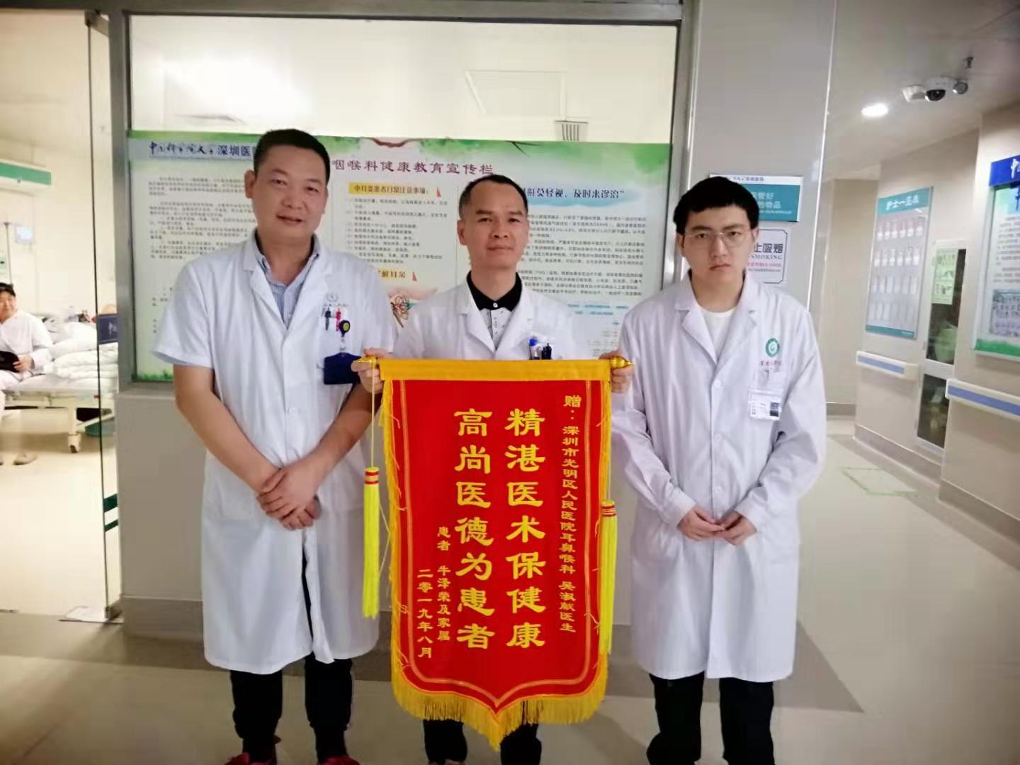 近日,党员、脊柱关节科魏思奇主任团队收到一面锦旗。曾先生患重度色素沉着绒毛结节性滑膜炎,曾在广州一家大医院进行了两次关节镜手术,术后病情比以前更严重,最后无法下地行走。得知国科大深圳医院从郑州大学附属第一医院引进了脊柱关节科专家魏思奇主任医师、教授,慕名从梅州老家来我院就诊。魏主任团队为其做了全膝关节置换手术,术后第二天患者就能正常下床行走,后期恢复良好,患者非常满意,特赠送锦旗致谢。(通讯员 黎佰胜)