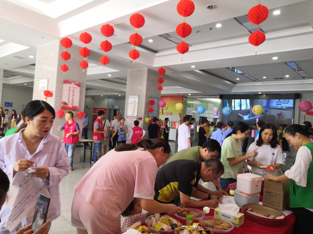 9月12日下午,客服中心和春暖社工在西院区联合开展“情暖中秋,欢度佳节”中秋游园活动,医护工作人员、患者及家属欢聚一堂,共迎中秋佳节。游园活动设置了猜灯谜、盲人帖画、投壶和套圈、搬运乒乓球、积分换礼品等游戏,还在现场设置美食区,医务人员与患者一同品尝月饼和小食,度过一个特别难忘的中秋节。(通讯员 罗丹丽)