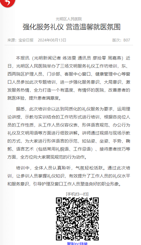 宝安日报:光明区人民医院 强化服务礼仪 营造温馨就医氛围